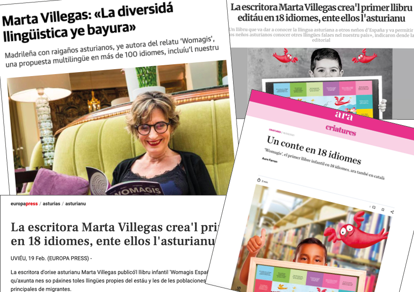 Después de mucho trabajo, investigación y colaboraciones varias con diseñadores e ilustradores, Villegas consiguió hacer realidad el libro ‘Womagis’, que en su versión española incluye las 18 lenguas más habladas en el país y las de las principales poblaciones migrantes, como por ejemplo el asturiano, el aranés, el catalán, el euskera, el tamazight o el árabe, entre otros.